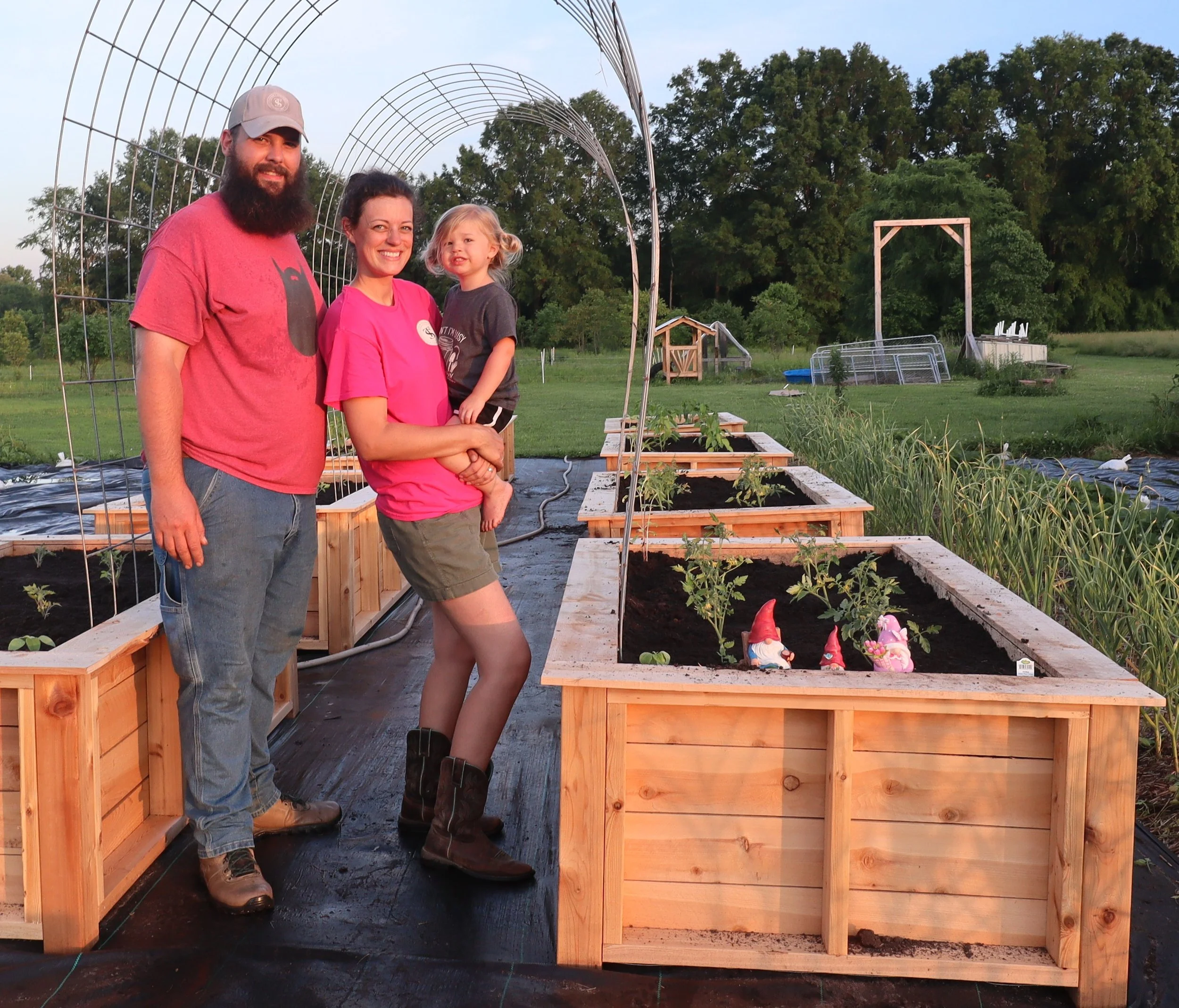 Fast forward to 2016 when Adam and Tina met, and soon after the talks of a small farm began. Adam had always had a desire to have a small “hobby farm” with some animals and some acreage to call his own. Tina may have been a bit reluctant at first knowing nothing about that world, but the idea was always there. When 2020 came around (we all know what happened there) the talks of small farm and growing/raising your own food and not relying on the outside world and others to sustain most life became more common and a goal was born.
